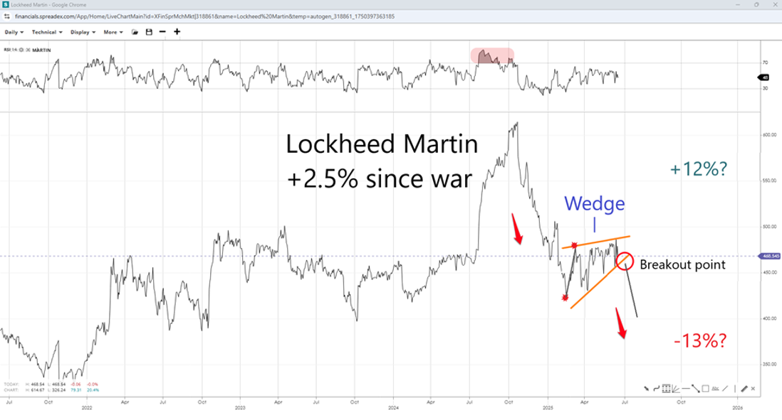 A deal in Geneva would likely offer relief to the markets but would come at the cost of the recent gains experienced by defence firms. On the other hand, if the US joins the war, increased tensions are expected to , possibly a more pronounced move than the one seen last Friday when the conflict began. The conflict is expected to remain areal, which indicates suppliers of missiles and aircraft to Israel could continue to witness gains as the battle persists.