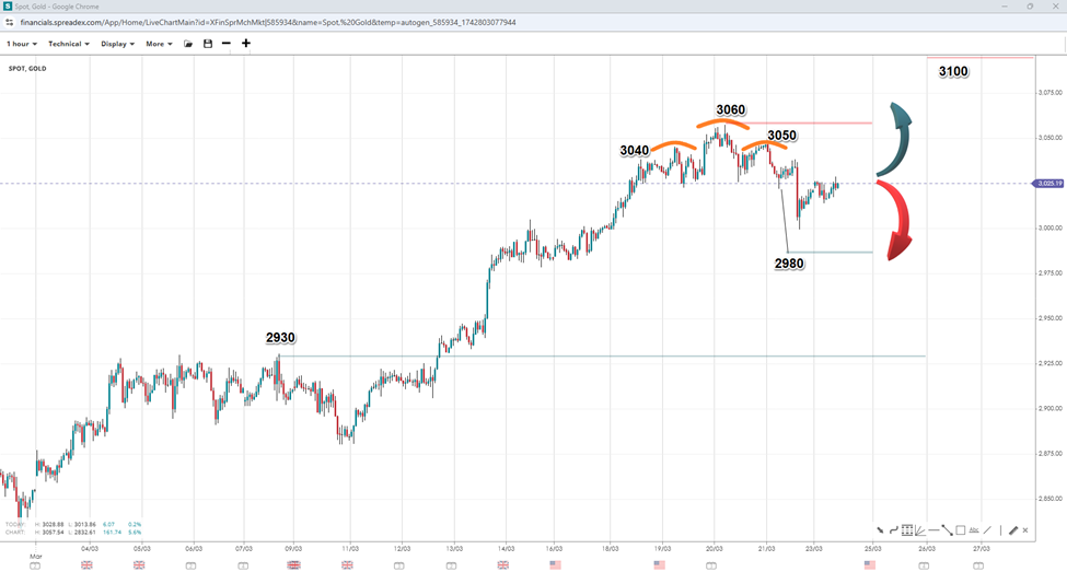 The price action of gold also reveals a head-and-shoulders (H&S) top formation at $3060 per ounce, indicating a potential continuation towards the measured move low of $2980 (measured from the breakout point of $3020 per ounce). However, further declines could open the door to a broadening wedge pattern instead, exposing lower levels around the $2930 swing area if $2980 gave way to bears. Only a move above the shoulder peaks of $3040 and $3050 or the record peak could reverse the short-term bearish trend, with the next resistance at the round $3100 level.