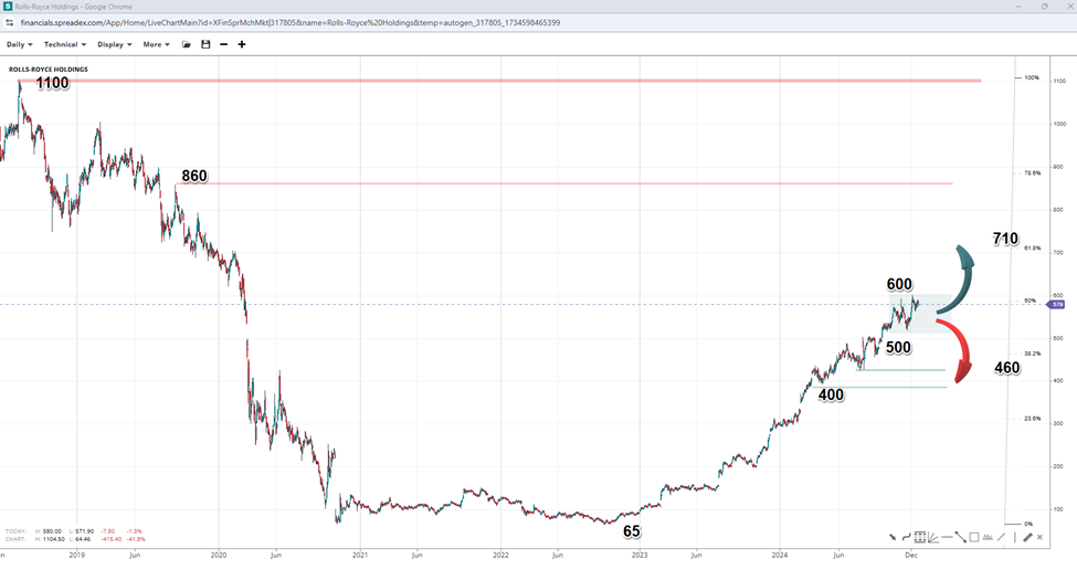 The UK market heads into 2025 with select sectors poised for outperformance against others that may underperform, with particular optimism surrounding the housing and manufacturing sectors. Rolls-Royce stands out as a prime beneficiary of potential trade redirections and manufacturing resilience as the Trump administration is poised to reveal new tariffs. While broader market sentiment remains cautious, sector-specific opportunities offer promising entry points as the BOE is expected to lower its interest rates.