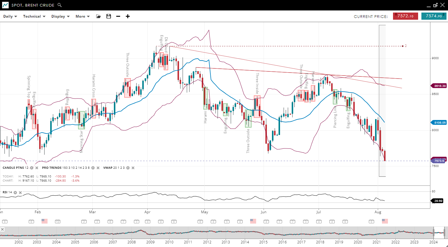 Brent Crude is now at new lows for the year in a new bearish trend and in a short-term bearish impulsive phase, with the price decreasing further to 75.73, now below the VWAP of 81.08. Support has adjusted lower to 75.74, while resistance has increased to 86.18. The RSI has decreased to 29, indicating a lack of strong bullish momentum.