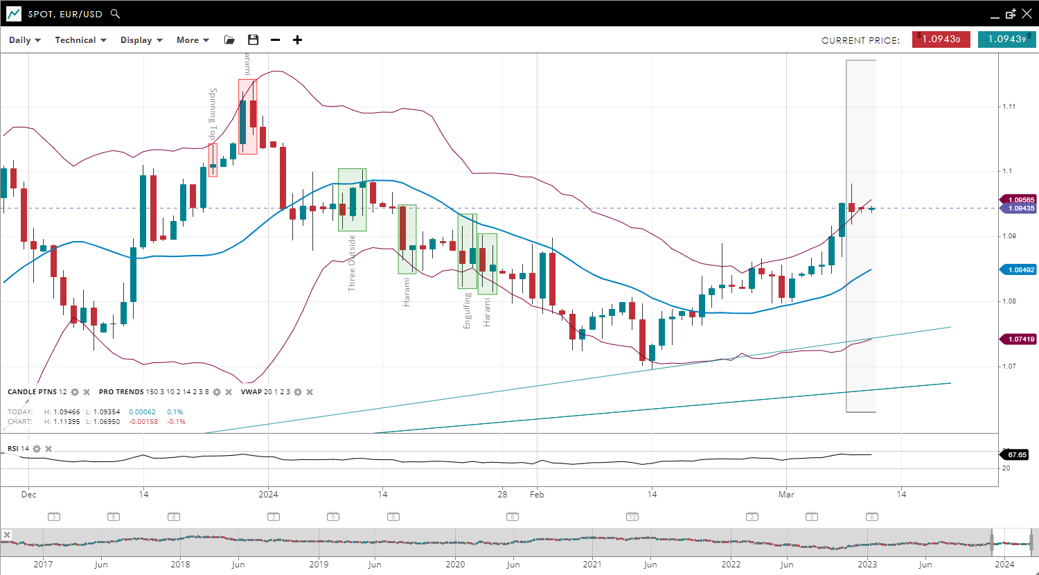 EUR/USD has shifted from the corrective phase of a bearish trend to the impulsive phase of a bullish trend, with the price increasing to 1.0943, above its upward-sloping 20-period VWAP of 1.0849. The support has now adjusted to 1.0741, with resistance at 1.0956. The RSI at 67 indicates a strong shift to positive momentum.