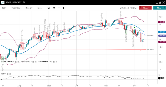 - Support/Resistance: Support at 144.2, resistance at 147.5.