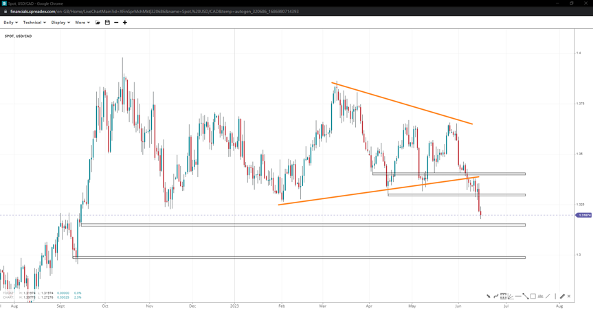 Price action in USD/CAD shows the pair might be due to a breakdown towards $1.30 via $1.3150 sooner than later as part of a triangle breakout. Bouncing higher might prove restrictive, with $1.33 and $1.34 likely strong resistances – should prices extend as high.