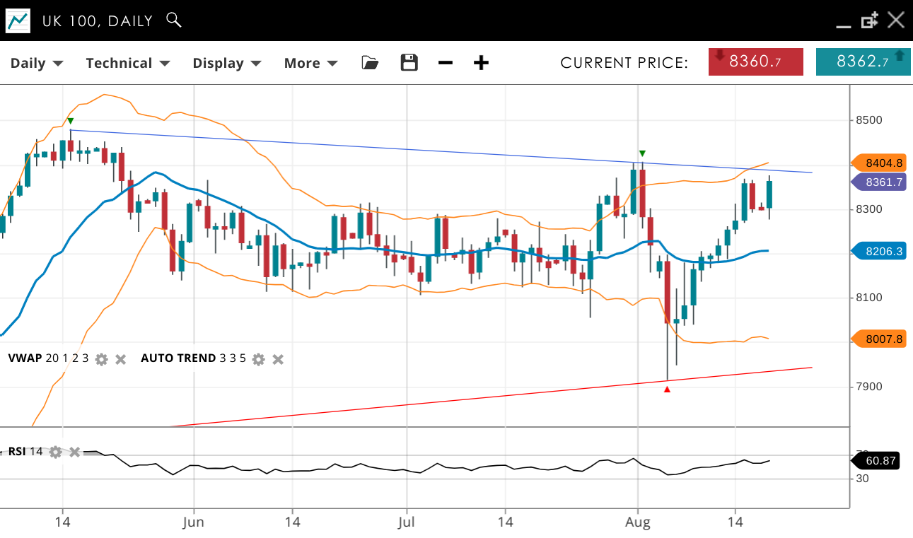 | UK 100 | Neutral | Consolidation | 8361 | 8206 | 8007 | 8404 | 60 |