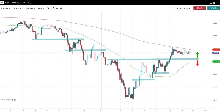 The Germany 40 price is stalling under its 200 SMA after breaking above and successfully testing 4100. The momentum is now up but the 4hr uptrend is still retracing the longer-term downtrend.
