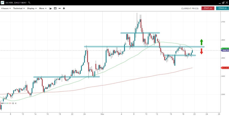 Silver has rallied right back to the neckline of its completed head and shoulders pattern. A move back over the neckline and 50 SMA would indicate further upside.