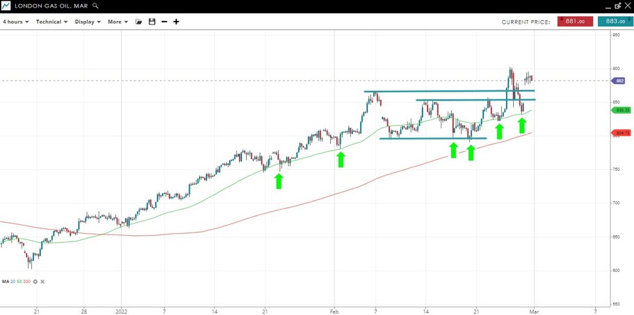 Price is attempting a break above the Feb 7 peak. It has been trending higher with the 50 SMA acting as dynamic support to any pullbacks.
