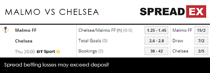 They club is admittedly yet to be properly tested in the competition this season. During the group stages they won 5 and draw 1, scoring 12 while conceding just 2 (both against Vorskla Poltava in their opening game). And when they’ve come up against tougher teams elsewhere they have tended to struggle, case in point being their 3-1 loss at Man City at the start of February. In theory they shouldn’t have too many issues on Thursday. Winning only half their games, BATE nevertheless finished behind Chelsea in a group that had little real competition. And with Pierre-Emerick Aubameyang and Alexandre Lacazette at Super Mega PGMs of 62-72 and 54-62 respectively, the Gunners are heavy favourites. Spreadex are offering an Arsenal/BATE Borisov (h) Goal Supremacy spread of 1.45-1.65 alongside a Total Goals spread of 2.95-3.15. As for Chelsea, they desperately need to shake-off their case of the blues when they head to Malmo. They’ve been routinely humiliated in the last few weeks, not only losing 3 of their last 4 league games, but doing so in truly embarrassing fashion. A 2-0 defeat at Arsenal was followed by a 4-0 shocker at Bournemouth, with a 5-0 win at Huddersfield an outlier before their abject 6-0 collapse at Man City.