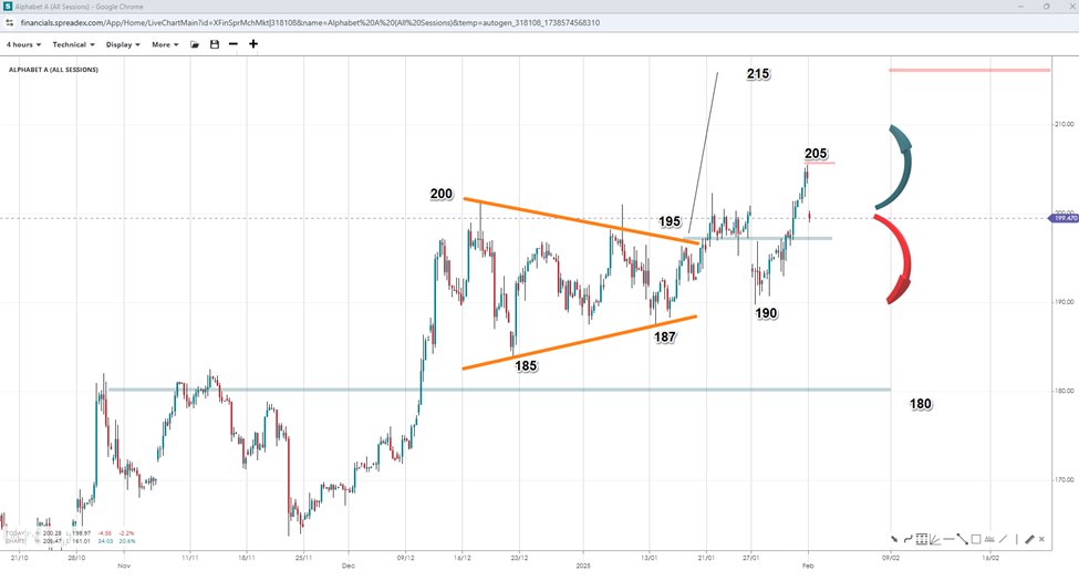 , with sales growing by 12% to $96.7 billion. As , investors will closely monitor the comments of CEO Sundar Pichai on the potential impact of DeepSeek and its influence on demand for storage and cloud computing, which could affect the company's star unit. Alphabet will issue its first guidance for 2025, with analysts projecting an EPS of $9.00 on revenues slightly over $360 billion.