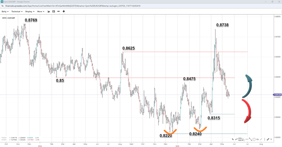 The expectation that the BOE will be slow to ease due to high inflation has kept the pound relatively elevated. As the dollar has recovered over the course of the last year, the pound has kept pace, with cable largely trending sideways. Meanwhile, the euro has been losing ground. Due to Moody's downgrading of the US credit rating, the bout of ended up supporting the pound more than the euro. But this likely relies on expectations that the upcoming CPI data for the UK will make the case for the hawks at the BOE.