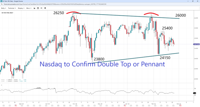 Nasdaq Double Top or Pennant?