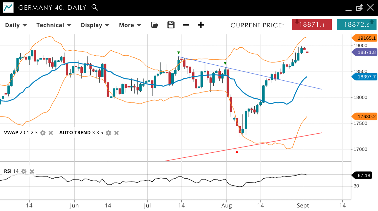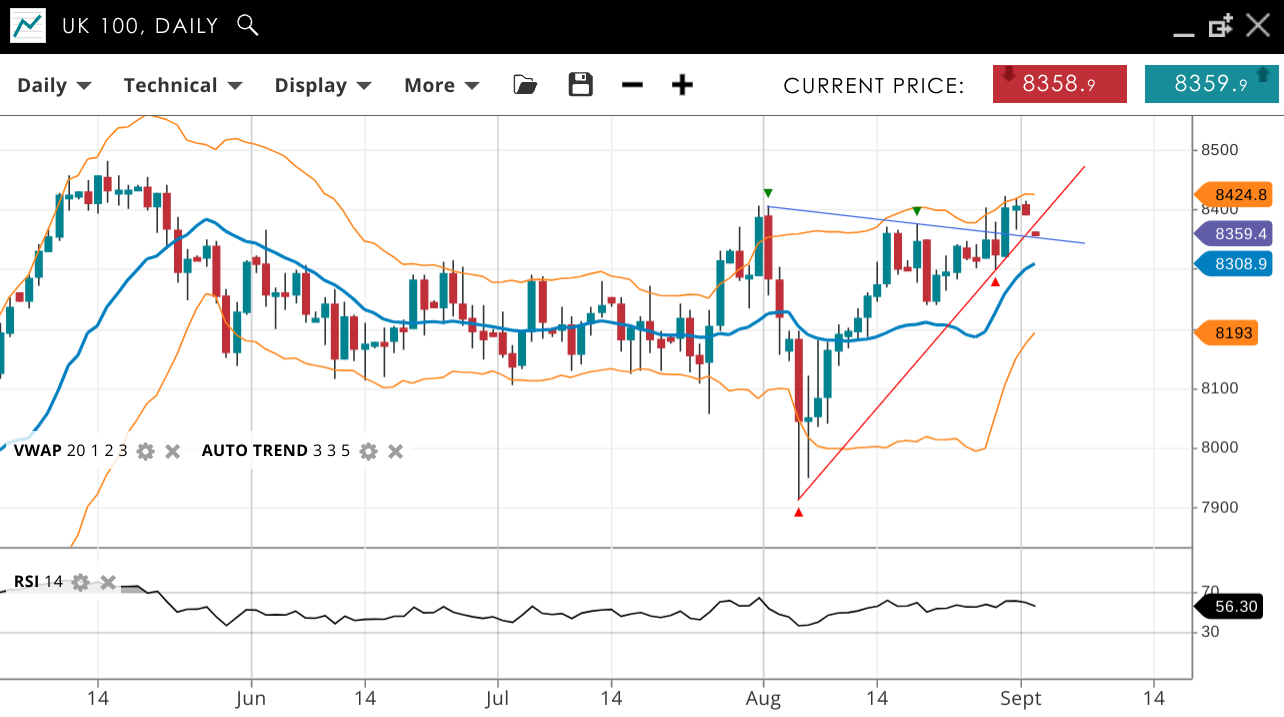 NOTE: These charts use the ‘Pro Trading Tools’ available on the SpreadEx trading platform. To use them, log in to your and click ‘Technical’ from the menu on any chart.