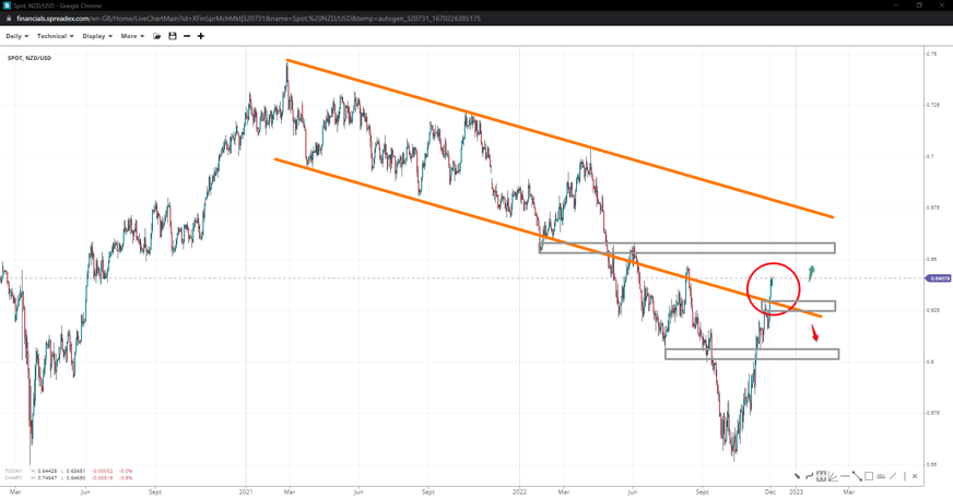 NZD/USD recently re-entered its longer-term bearish channel, making its way to 0.6600. 0.6475 and 0.6580 are near-term resistance levels, with the channel top being a critical ceiling to regain control of. Increased short bets face support at 0.6290 and 0.6058.