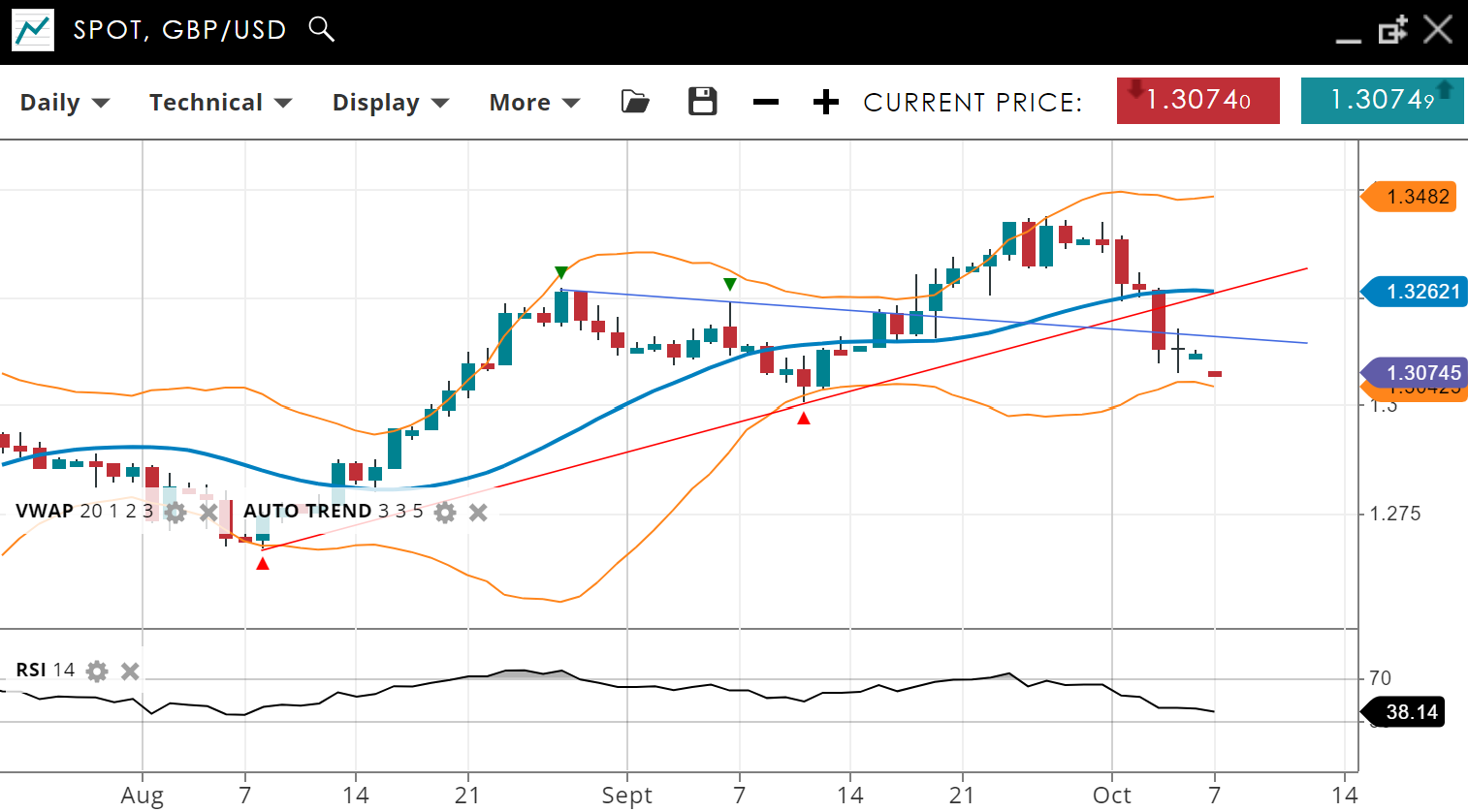 NOTE: These charts use the ‘Pro Trading Tools’ available on the SpreadEx trading platform. To use them, log in to your and click ‘Technical’ from the menu on any chart.