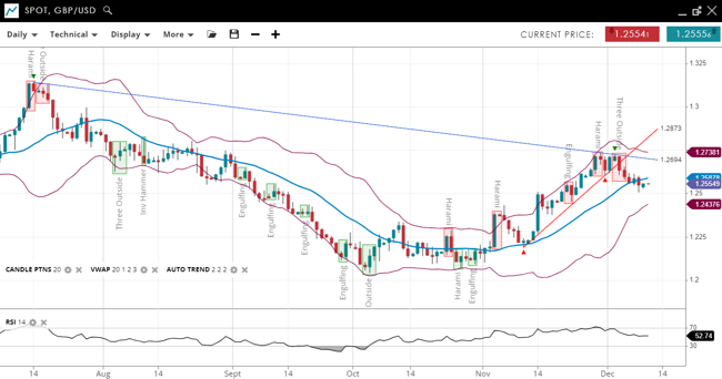 - Support/Resistance: Support at 1.2438, resistance at 1.2738.