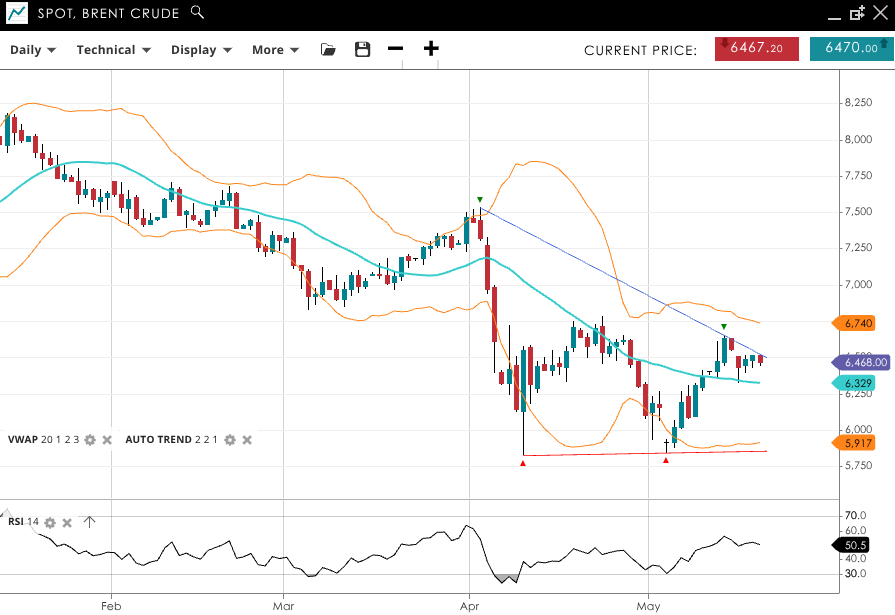 | Brent Crude | Neutral | Consolidation | 6468 | 6329 | 5917 | 6740 | 50.5 |