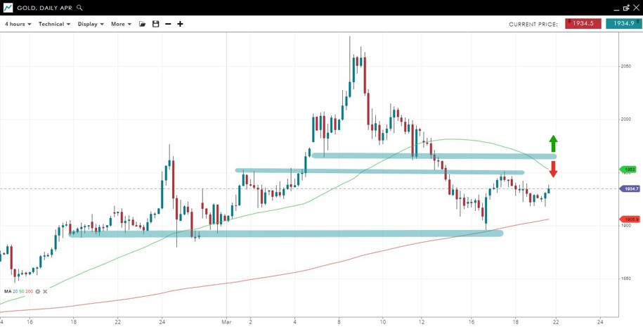The Brent price erased its entire March rally before stabilising and rising back over the key 100 level as well as both SMAs. Another drop under 100 would likely put a pause to the long term uptrend.