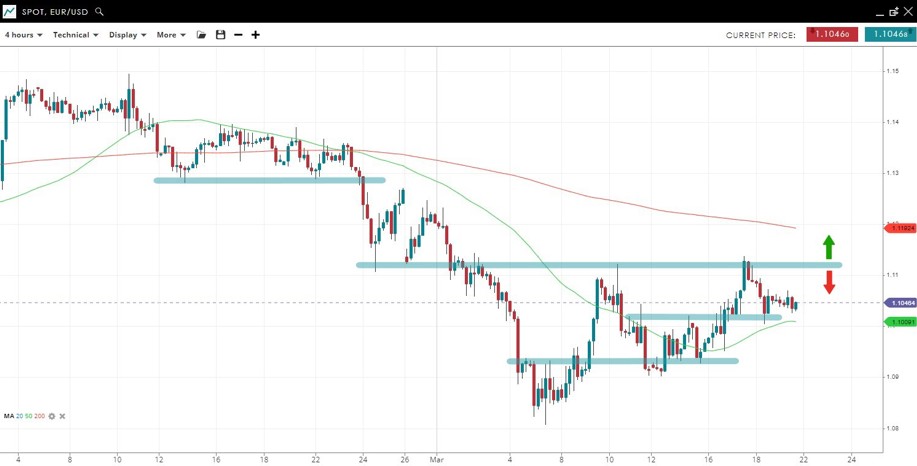 The euro has rallied back over 1.11 and fallen back for a second time. The third attempt could see a breakout but the 200 SMA then 1.13 is resistance.