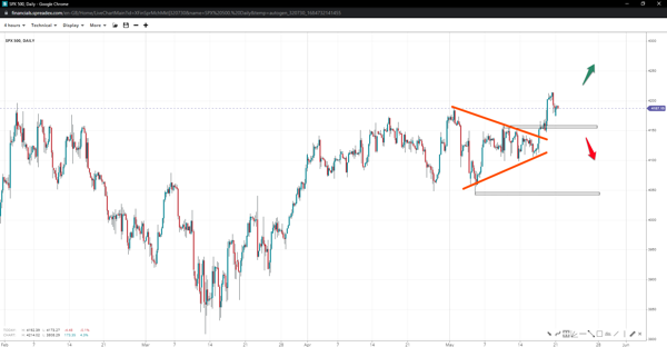 A triangle completion has offered SPX a helping hand with the breakout opening the door to 4270, based on the measured move, but unlikely 4325. Staying above 4100 is a critical development for bulls, as a drop lower could enact an extended leg towards 4k in case 4050 succumbs to pressure.