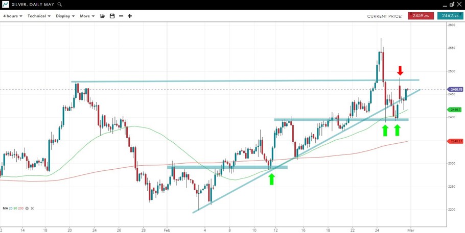 Price is attempting a break above the Feb 7 peak. It has been trending higher with the 50 SMA acting as dynamic support to any pullbacks.