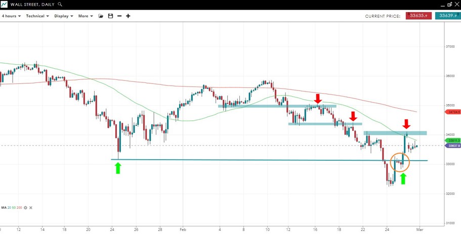 Price made a fresh 2022 low but has snapped back above the Jan 24 low since to test resistance at 34K.